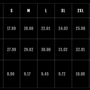 | S | M | L | XL | 2XL | 3XL | |