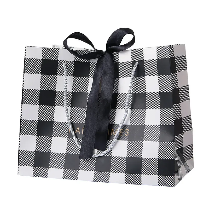 Simple Fashion Black White Plaid Bow Ribbon Gift Handle Paper Bag