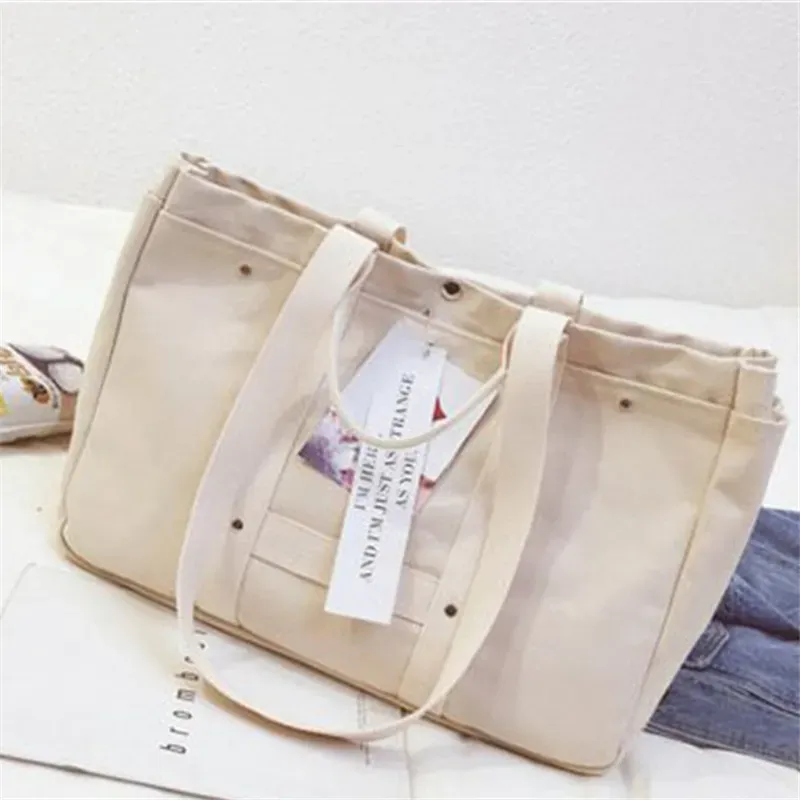 Women Fashion Letter Decorative Large Capacity Canvas Shoulder Bags
