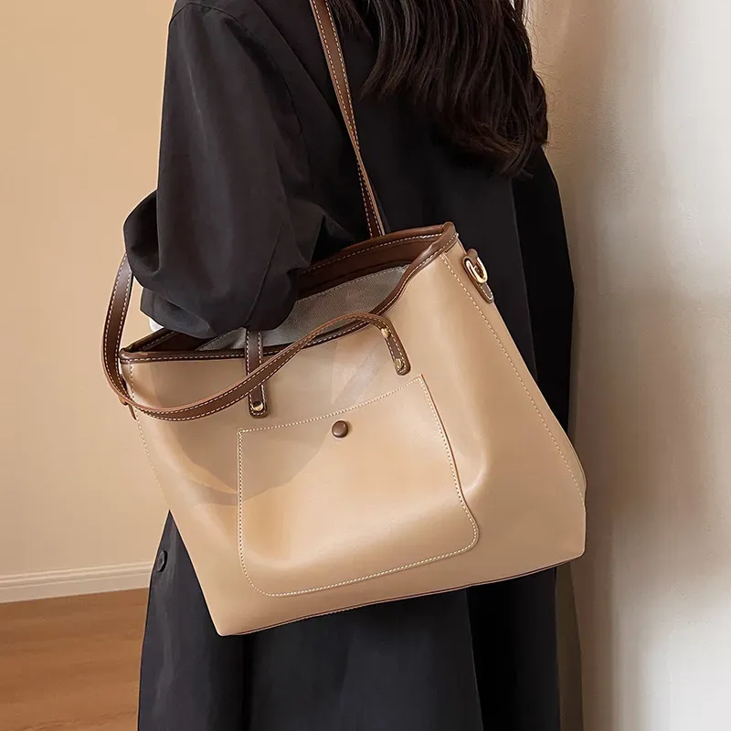Women Fashionable Large Capacity PU Solid Color Tote Bag