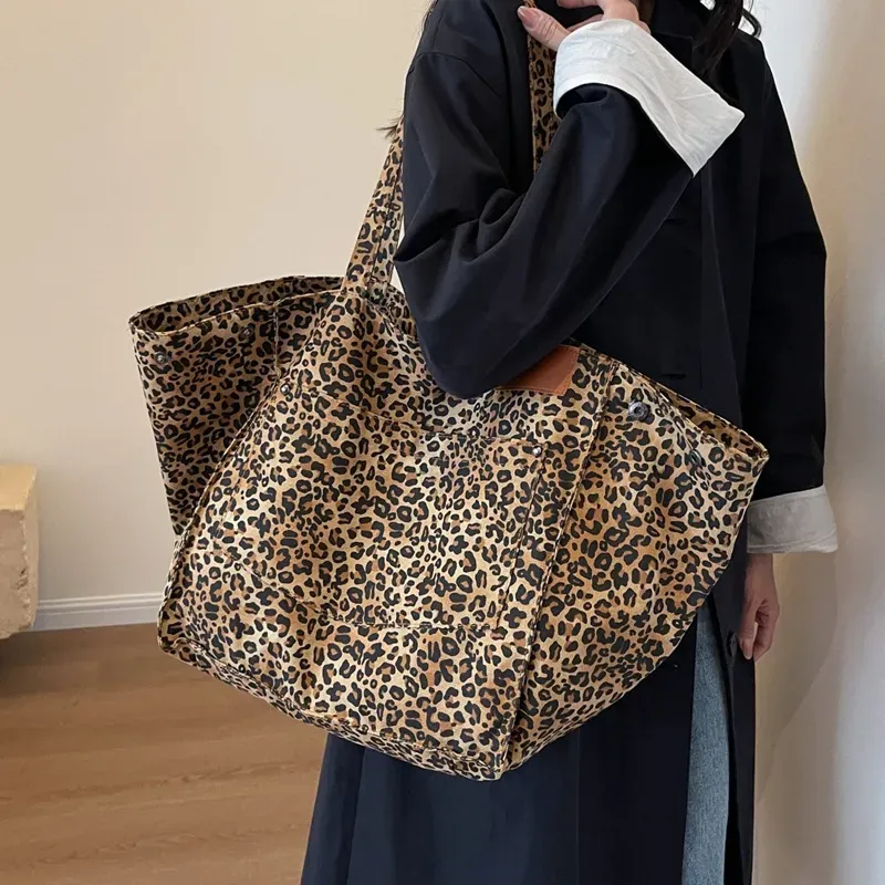 Women Fashionable Large Capacity Leopard Printed Canvas Tote Bag