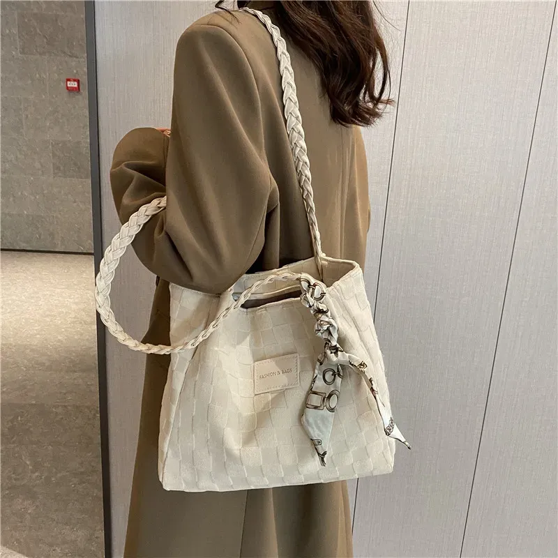 Women Fashionable Casual Rhombic Large Capacity Canvas Tote Bag