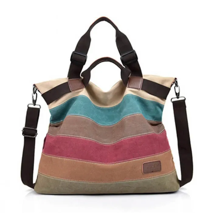 Women Retro Color Blocking Patchwork Large Capacity Canvas Tote Bag