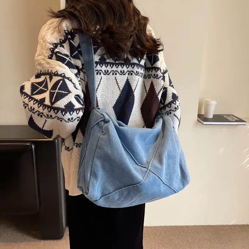 Women Fashionable Simple Large Capacity Denim Shoulder Tote Bag