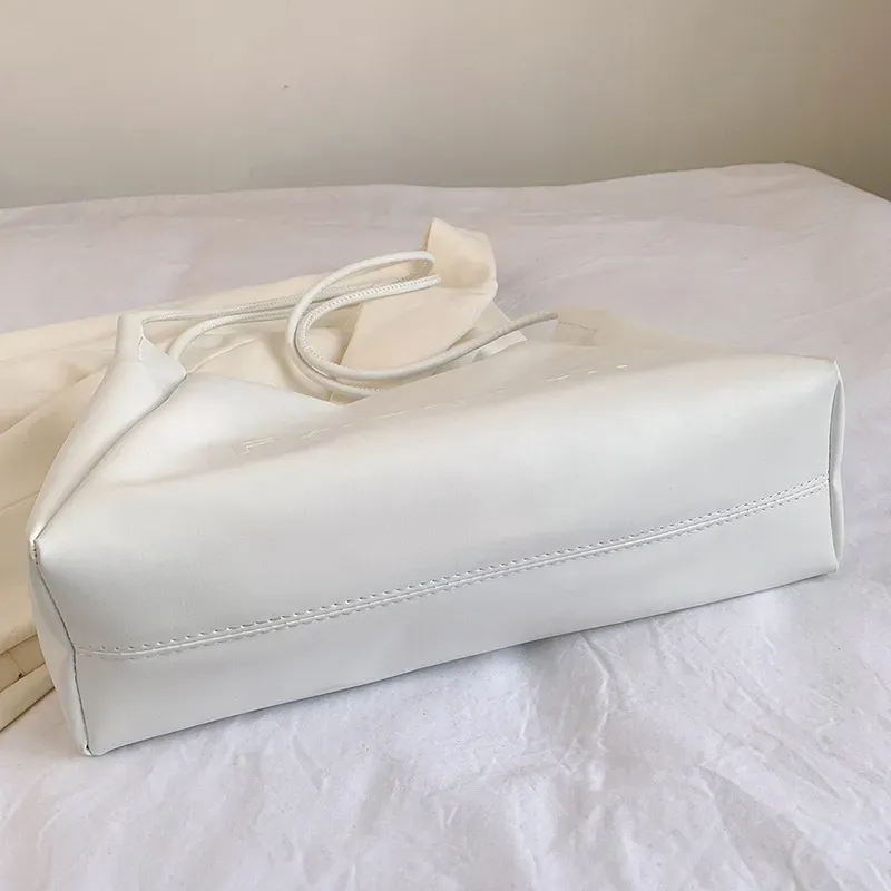 Women Fashionable Solid Color Letter Large Capacity Shoulder Tote Bag