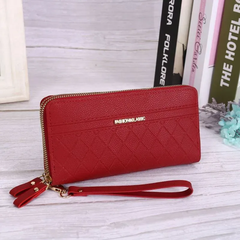 Multi-Card Women Vintage Zipper Design Solid Color Large Capacity Quilted Purse