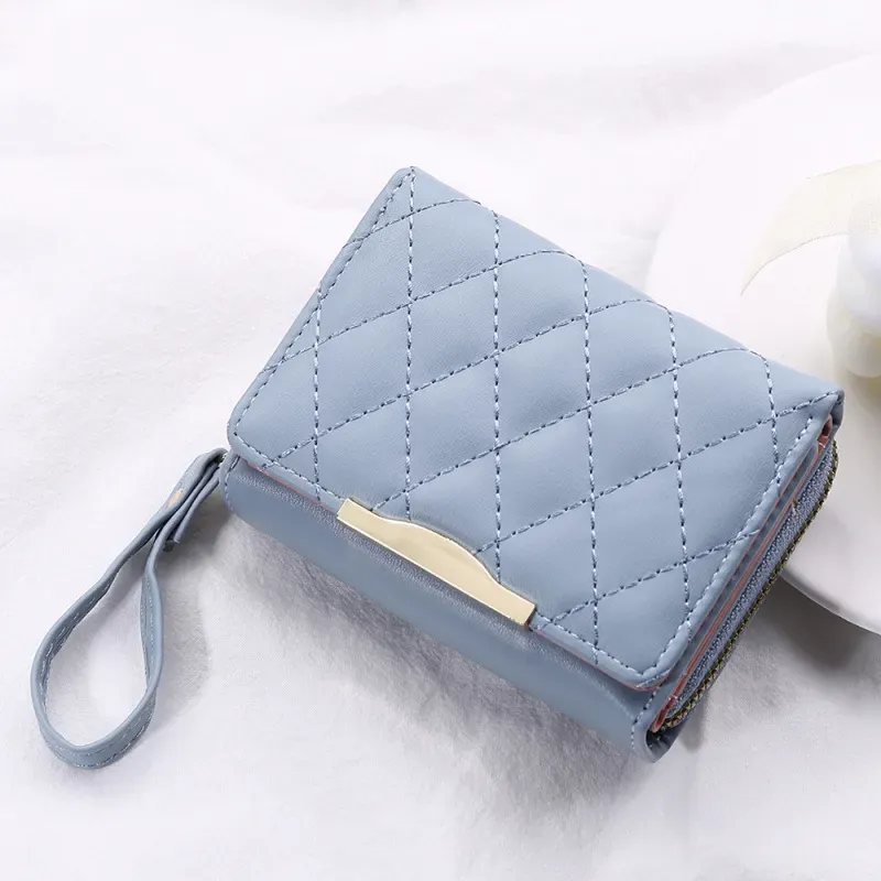 Women Fashion Buckle Tri-Fold Card Holder Pu Leather Multi-Card Zipper Wallet