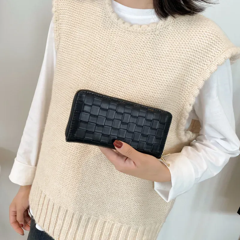 Women’S Fashion Rhombus Indentation Long Zipper Large Capacity Coin Purse