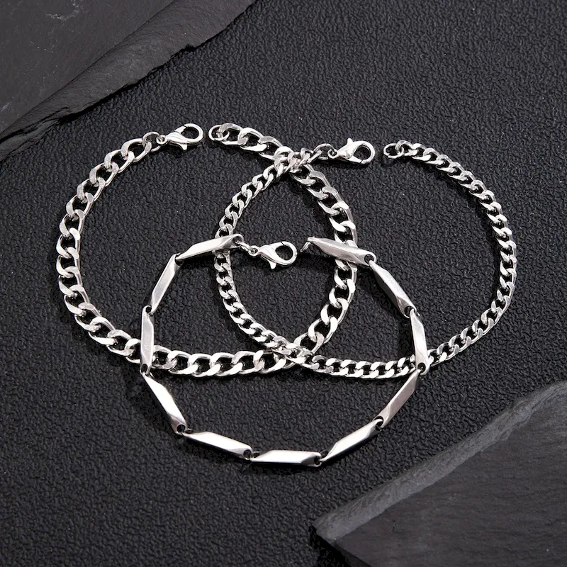 Wholesale Men Fashion Titanium Steel Bamboo Chain Bracelet Three-Piece Set