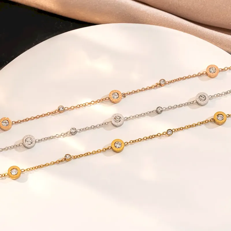 Wholesale Stainless Steel Roman Numerals Rhinestone Bracelet
