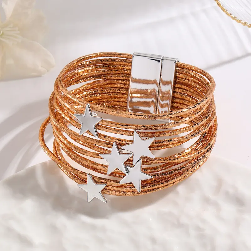 Wholesale Women Fashion Multi-Layer Leather Five-Pointed Star Magnetic Bracelet