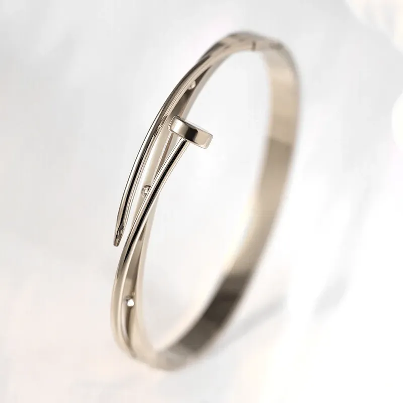 Wholesale Women Fashion Simple Electroplated Gold Nails Titanium Steel Bracelet