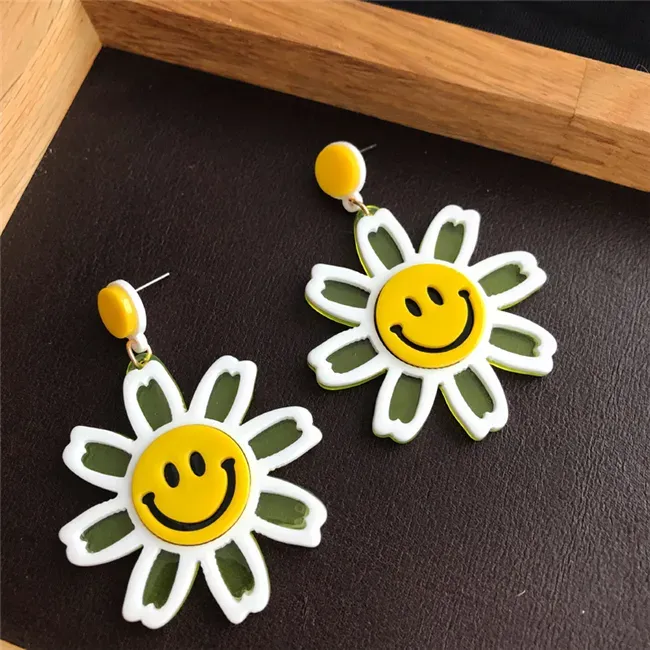 Wholesale Simple Fashion Flower Smiley Pendant Earrings