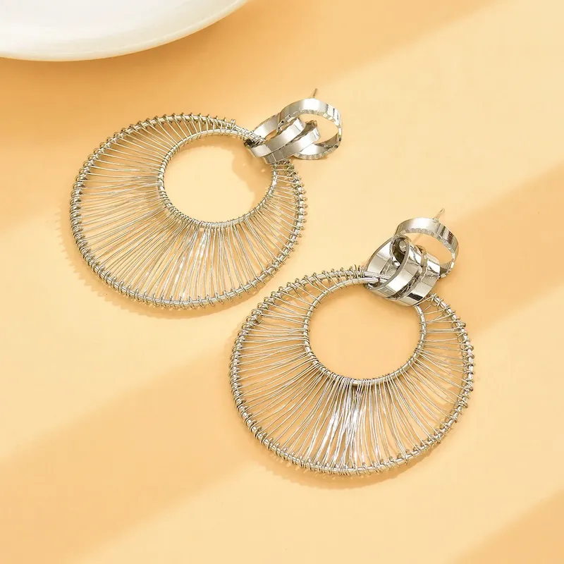 Wholesale Women Fashion Simple Geometric Round Winding Hollow Earrings