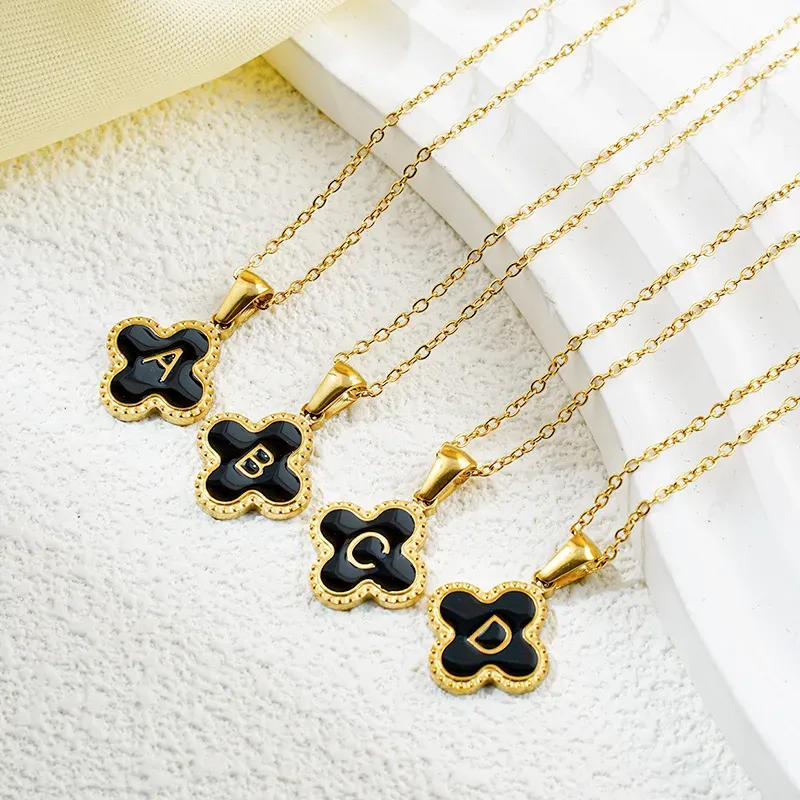 Wholesale Fashion Clover 26 Letter Black White Fritillaria Necklace