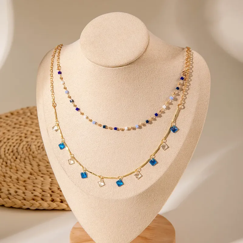 Wholesale Fashion Multicolor Rhinestone Tassel Multilayer Necklace