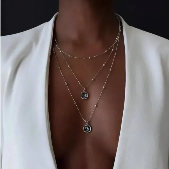 Wholesale Fashion Long Round Bead Chain Stacked Multilayer Necklace