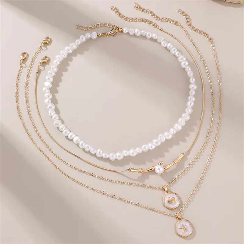 Wholesale Women Fashion Multi-Layer Imitation Pearl Metal Oil Drop Pendant Necklace Set