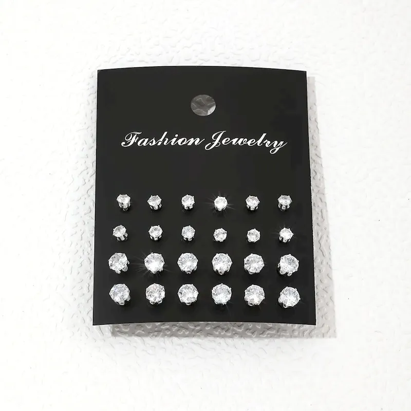Wholesale Women Fashion Simple Rhinestone Earrings 12 Pair-Set
