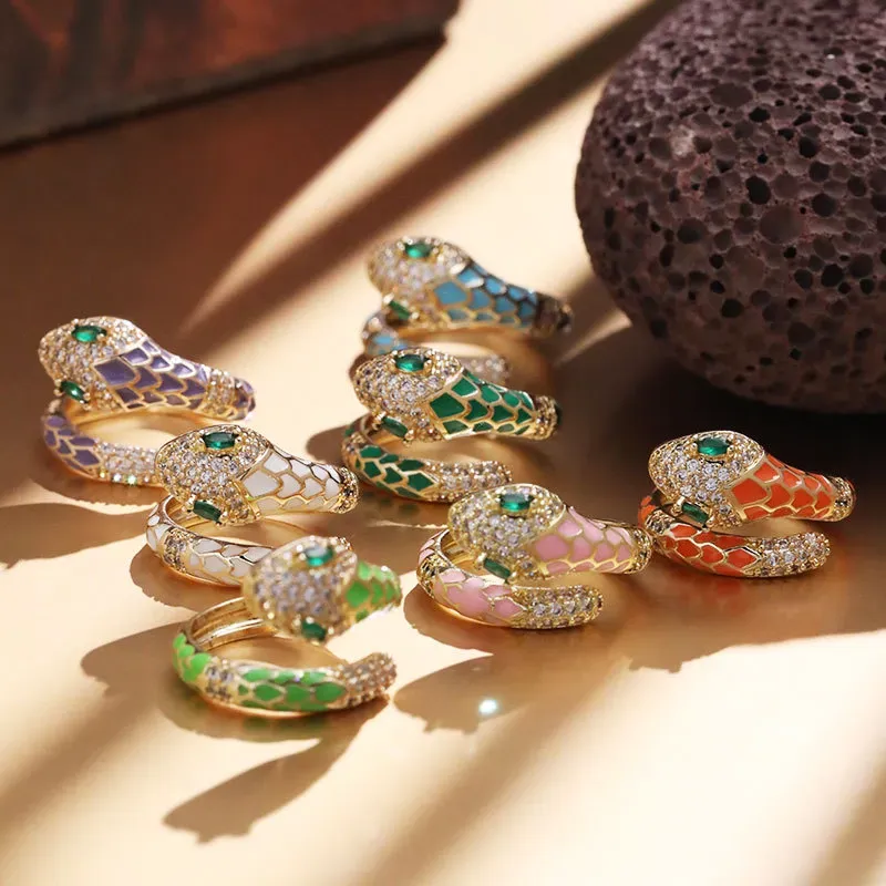 Wholesale Women Fashion Creative Brass Oil Dropping Snake Opening Ring
