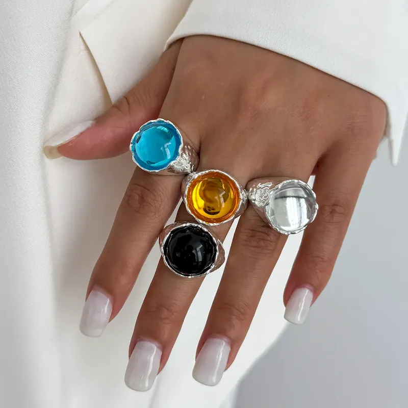 Wholesale Women Fashion Acrylic Imitation Gem Pleated Liquid Wide Ring