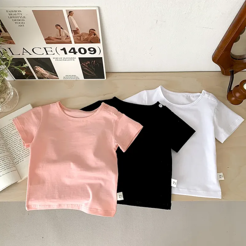 Wholesale Kids Baby Casual Solid Color Cotton Short-Sleeve T-Shirt