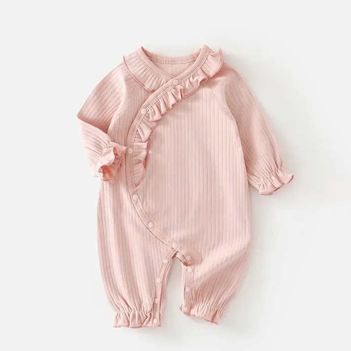 Wholesale Kids Baby’S Boys And Girls Autumn And Winter Solid Color Long-Sleeve Rompers