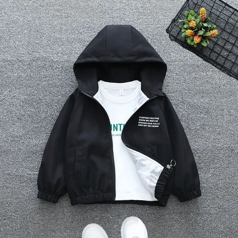 Wholesale Boy’S Fashion Casual Letter Printed Zipper Pockets Long-Sleeve Hoodies Coat