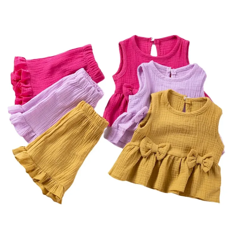 Wholesale Summer Girls Sweet Cute Bow Cotton Tank Top Shorts Ruffled Set