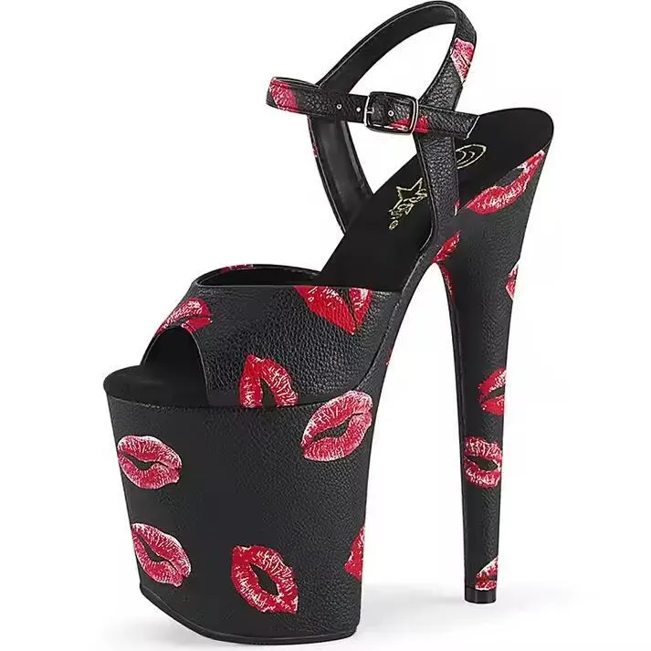 Women Sexy Nightclub Pole Dance Lips Print 20Cm High-Heeled Shoes