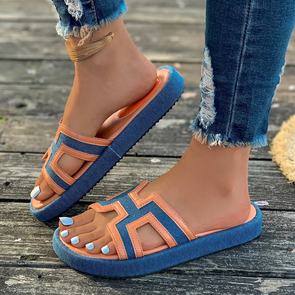 Women Fashion Casual Contrast Color Round-Toe Platform Slippers