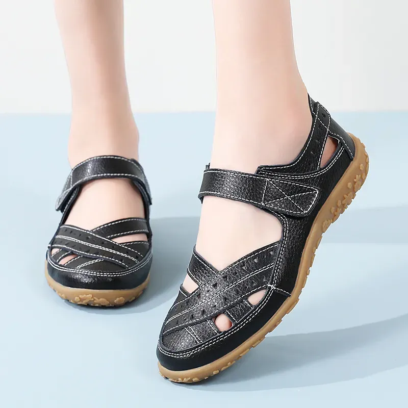 Women Fashion Casual Solid Color Hollow Hole Wedge Velcro Sandals