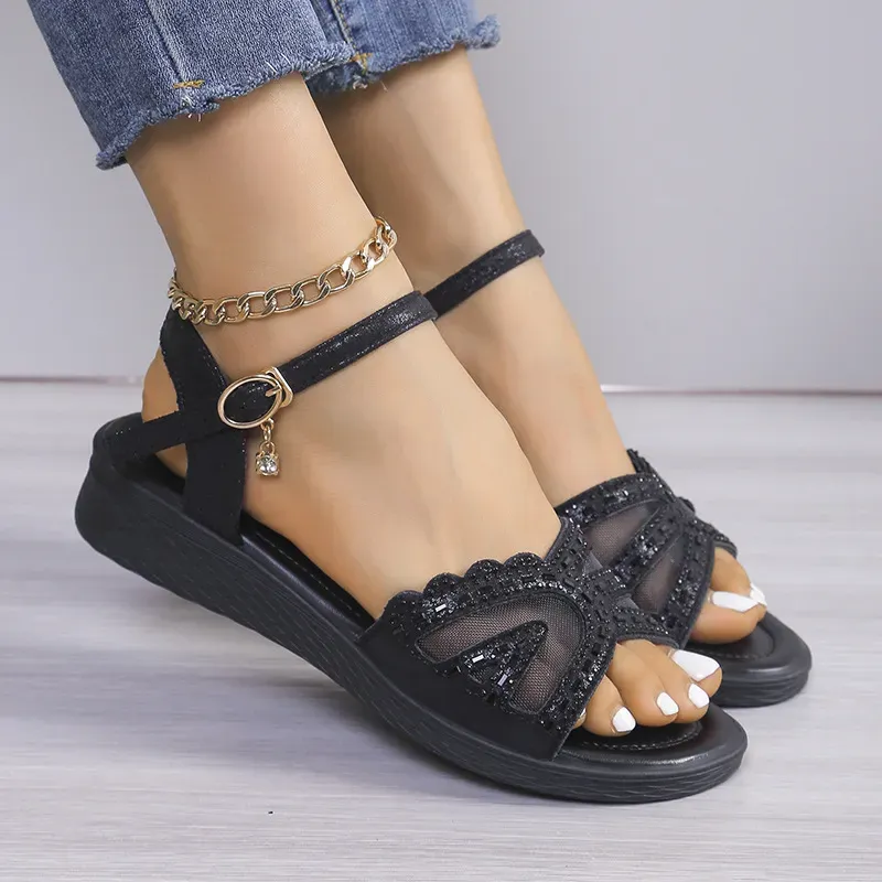 Women Casual Rhinestones Peep-Toe Wedge Sandals
