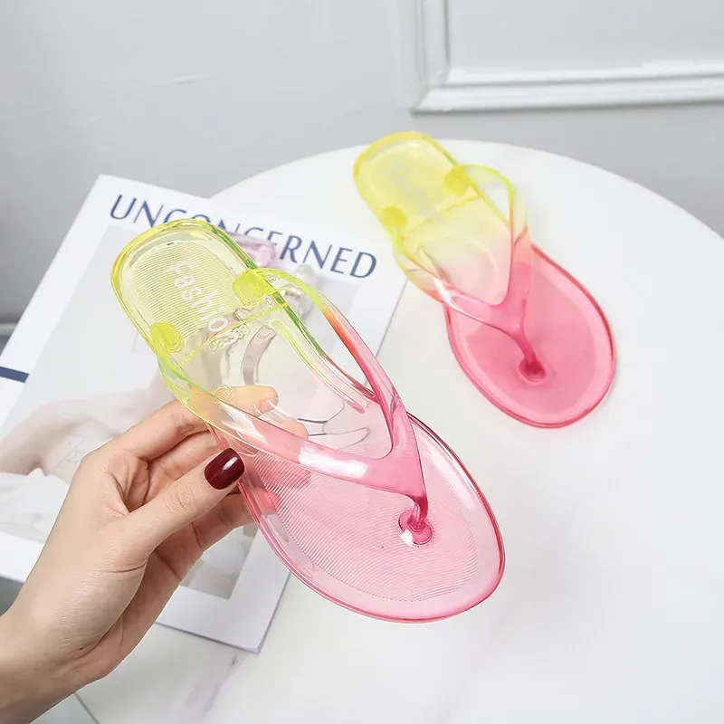 Women Creative Casual Transparent Gradient Design Flat Beach Flip-flops