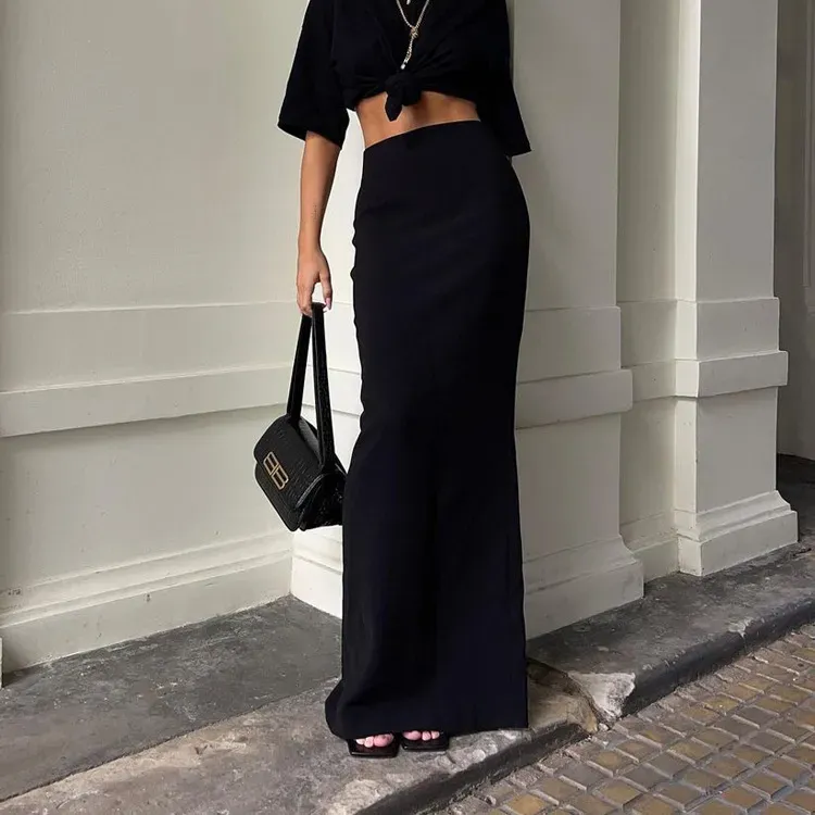Summer Women Solid Color Gothic Punk High Waist Slim Fashion Slit Skirt