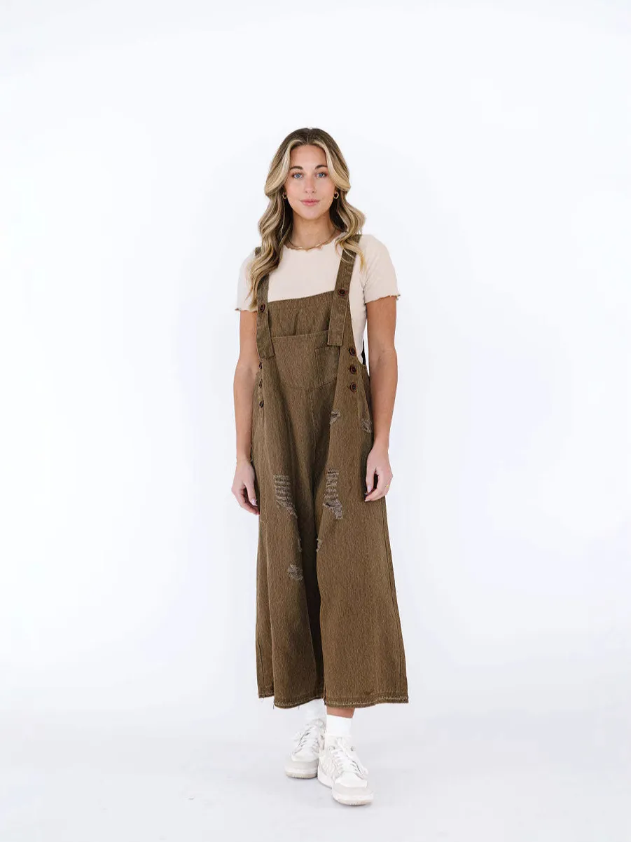 Autumn Solid Color Denim Strap Ripped Cropped Jumpsuits