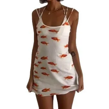 Women Fashion Sexy Goldfish Print Sleeveless Spaghetti Strap Tight Dress
