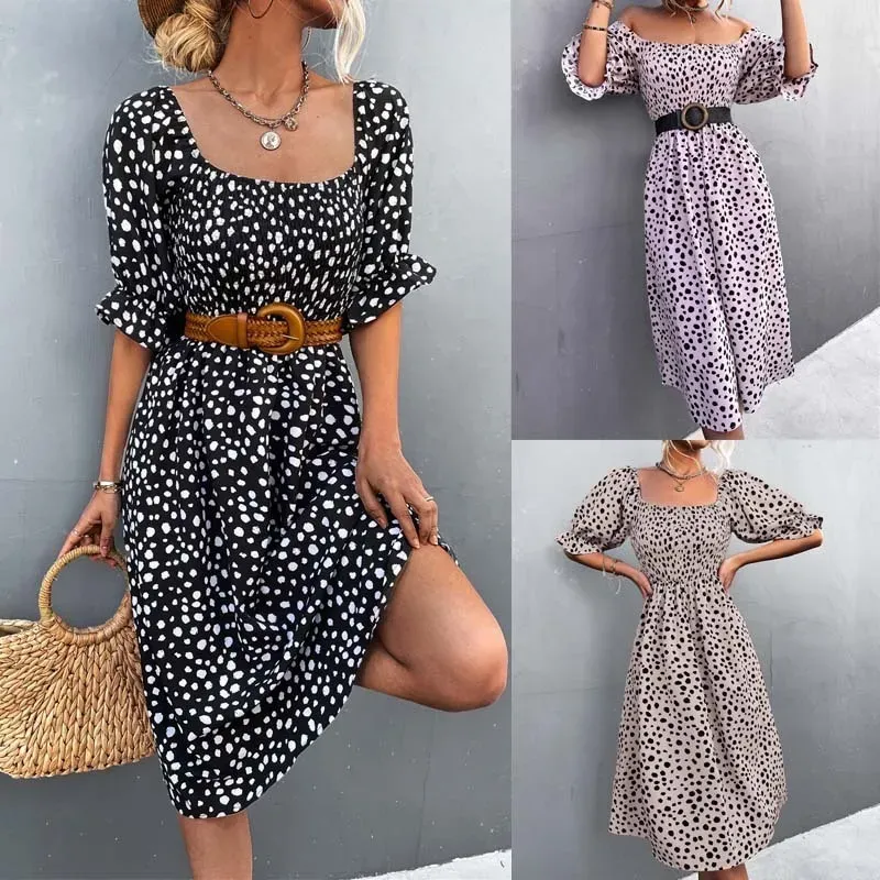 Women Fashion Casual Boho One Shoulder Belt Short Sleeve Dress