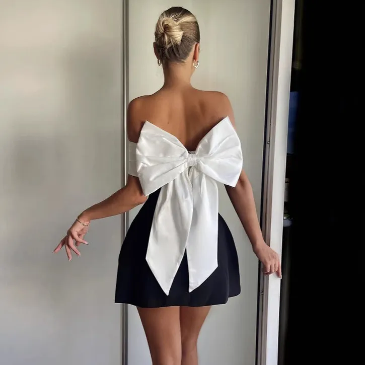Women Fashion Sexy Solid Color Off Shoulder Horn Sleeve Mini Dress