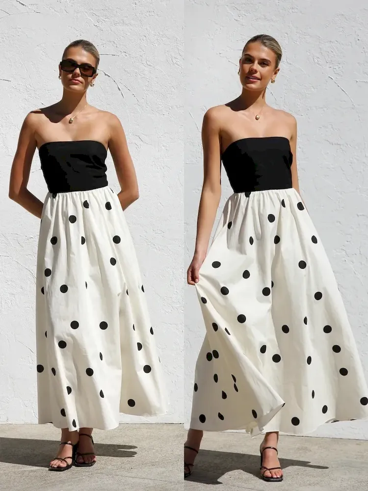 Women Summer Leopard Printed Sexy Strapless Side Slit Tube Dress