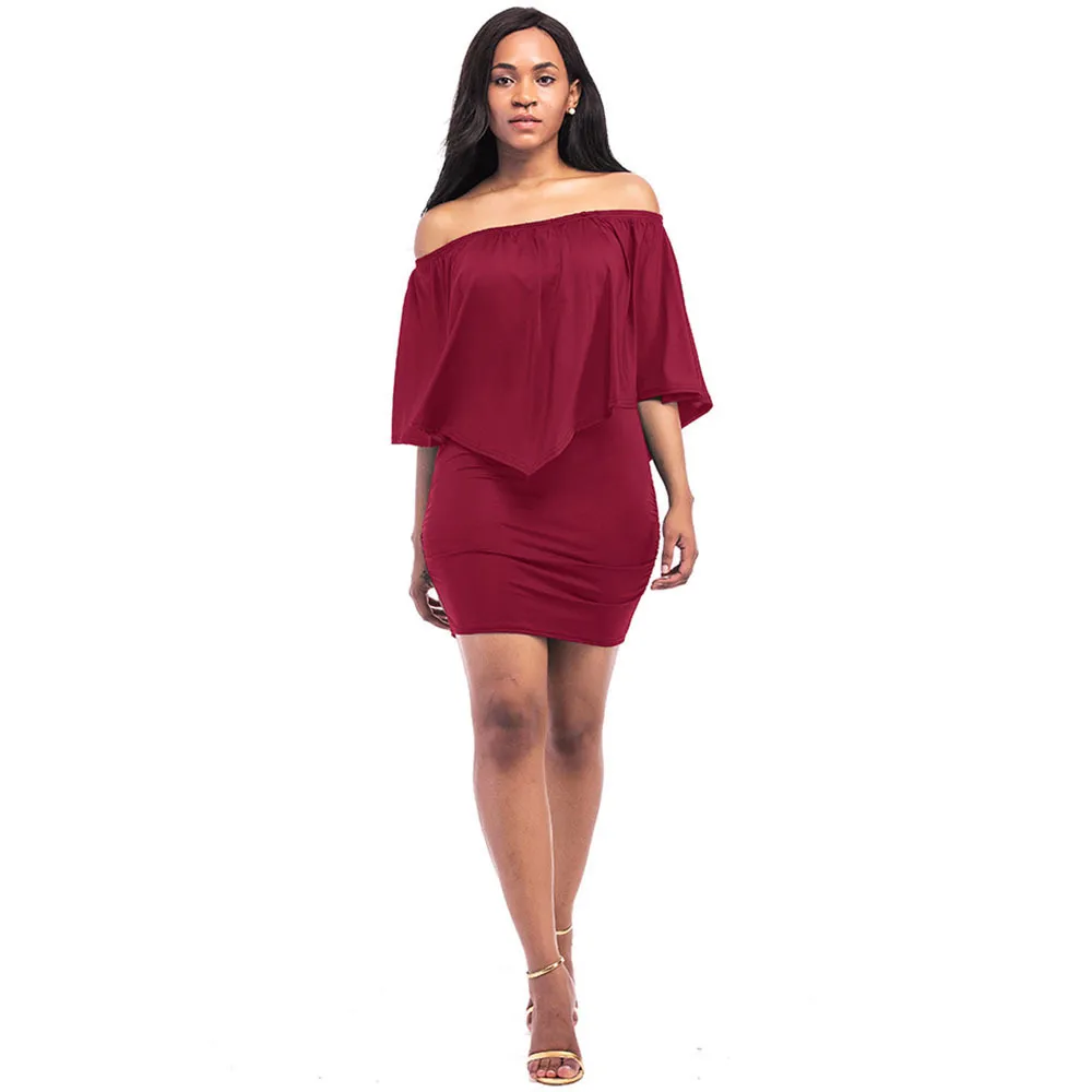 Women Sexy Solid Color Irregular Pleated Off Shoulder Slim Fit Dress