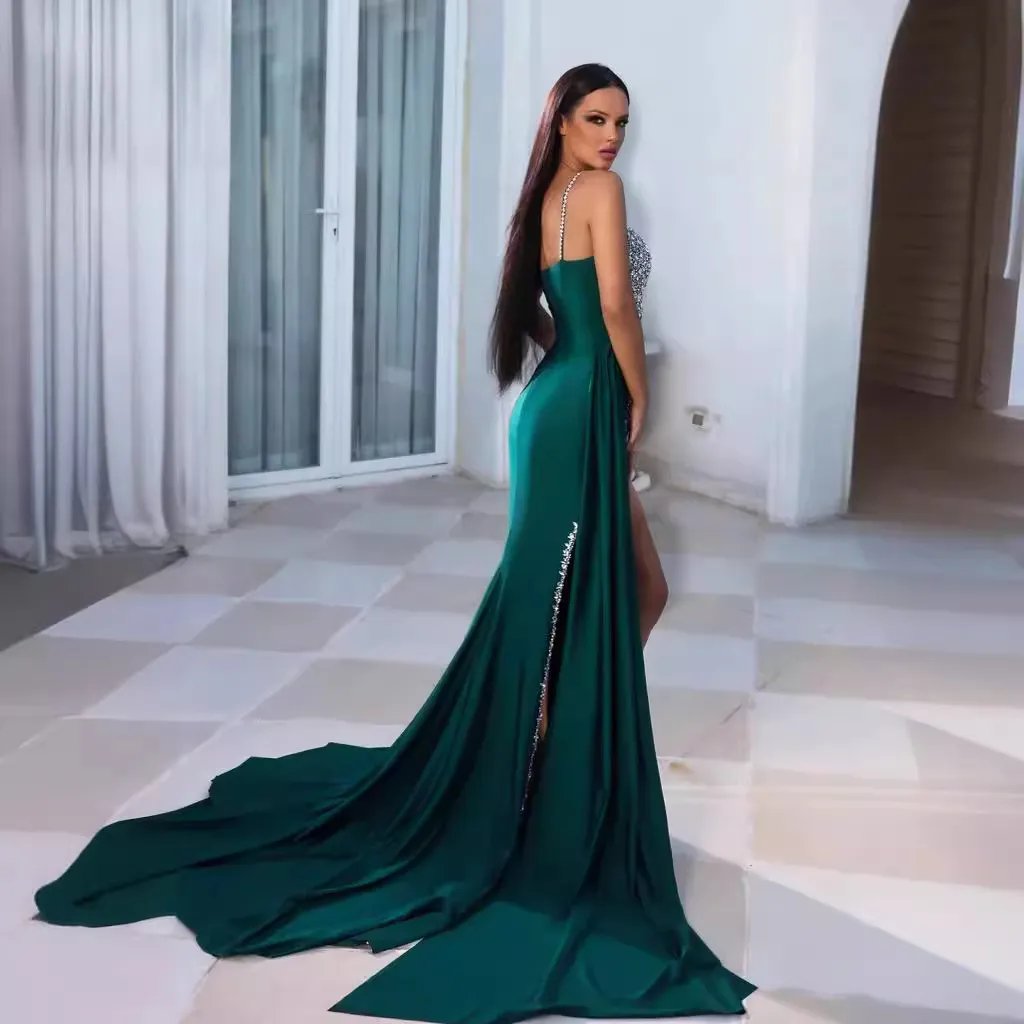 Women Fashion Sexy Heavy Industry Bronzing Split Mop Party Dress