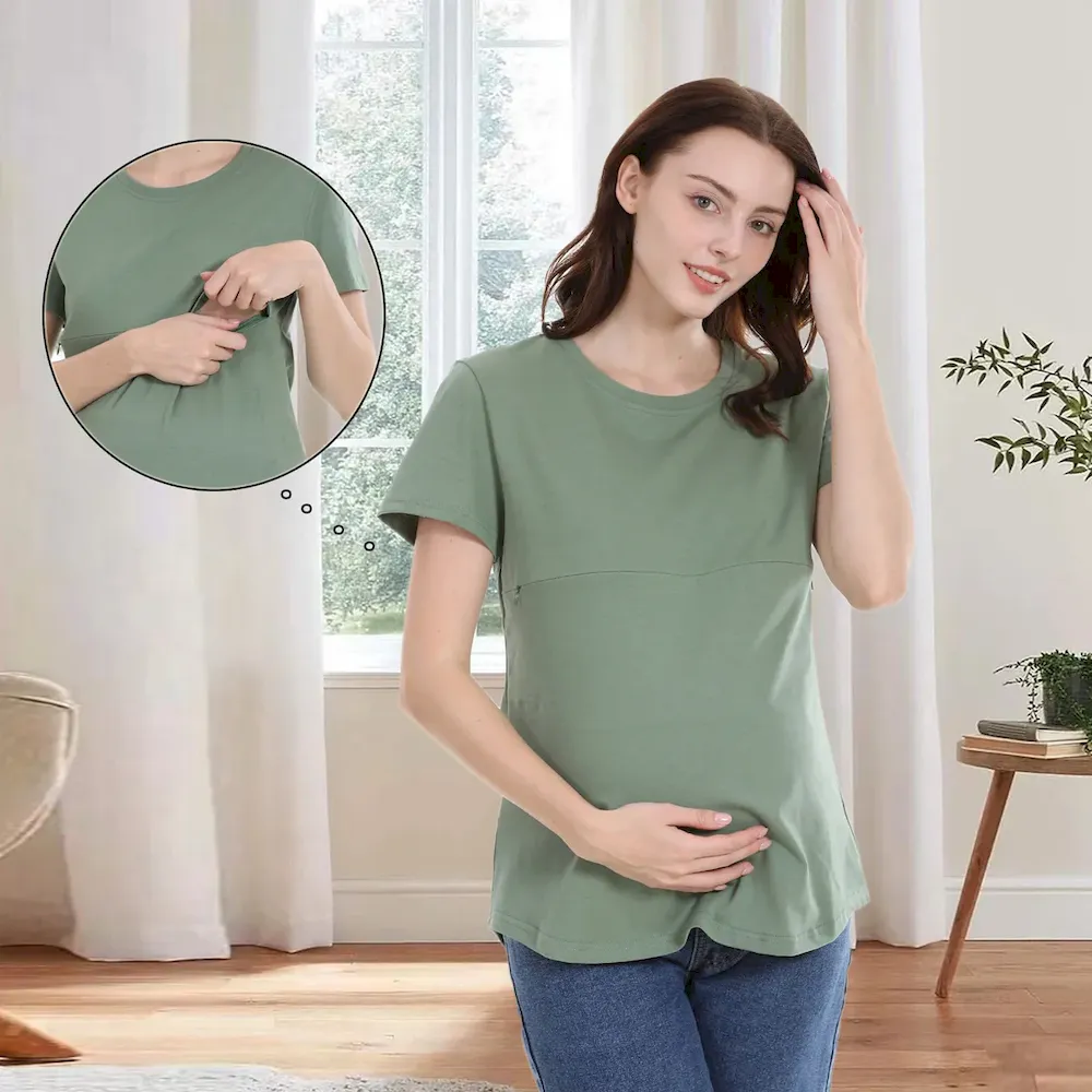 Women Casual Short-Sleeved Cotton Zipper Breastfeeding Pregnant Women T-Shirt