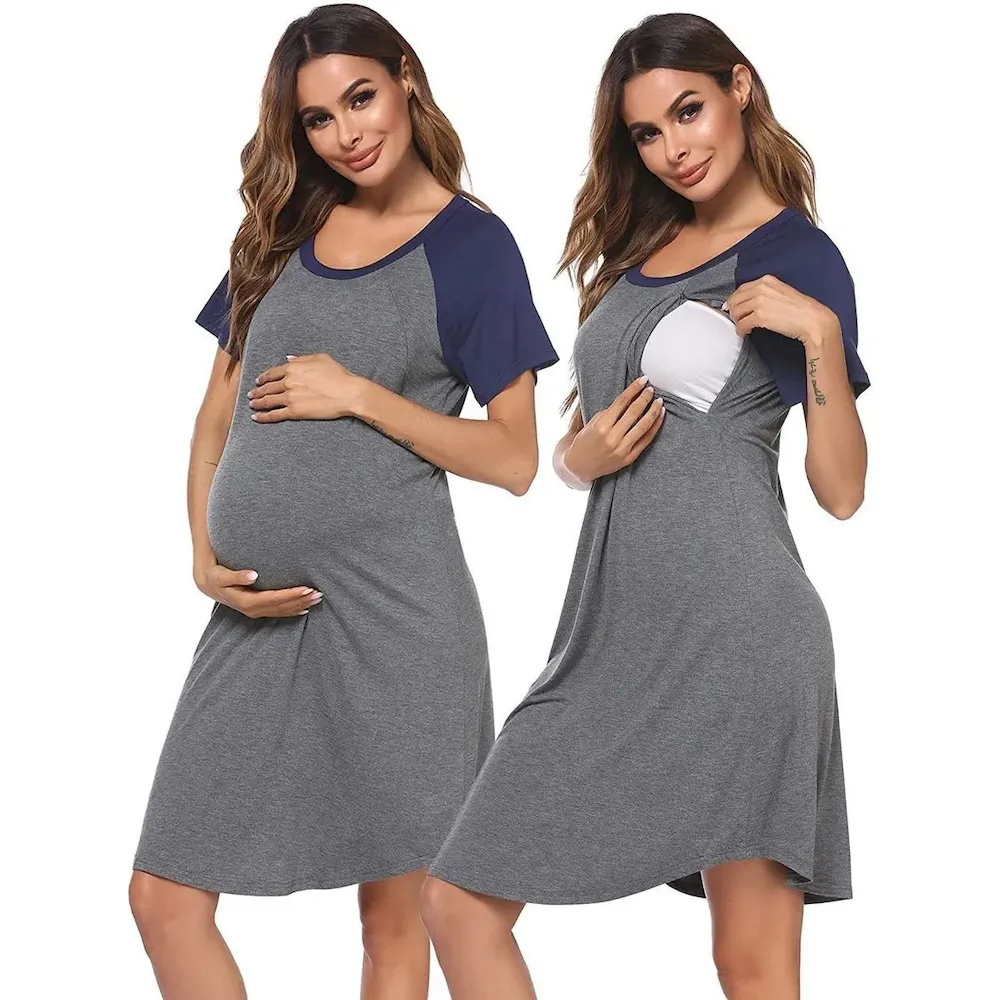 Women Casual Stitching Short Sleeve Round Neck Pregnant Women Dress