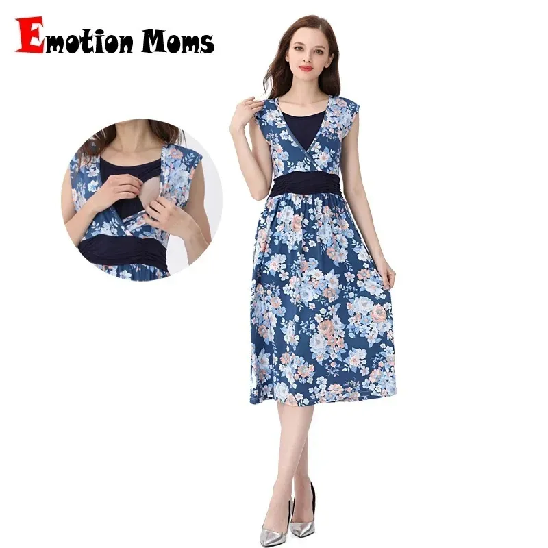 Summer Pregnant Women Fashion Loose Floral Printed Sleeveless Breastfeeding Dress
