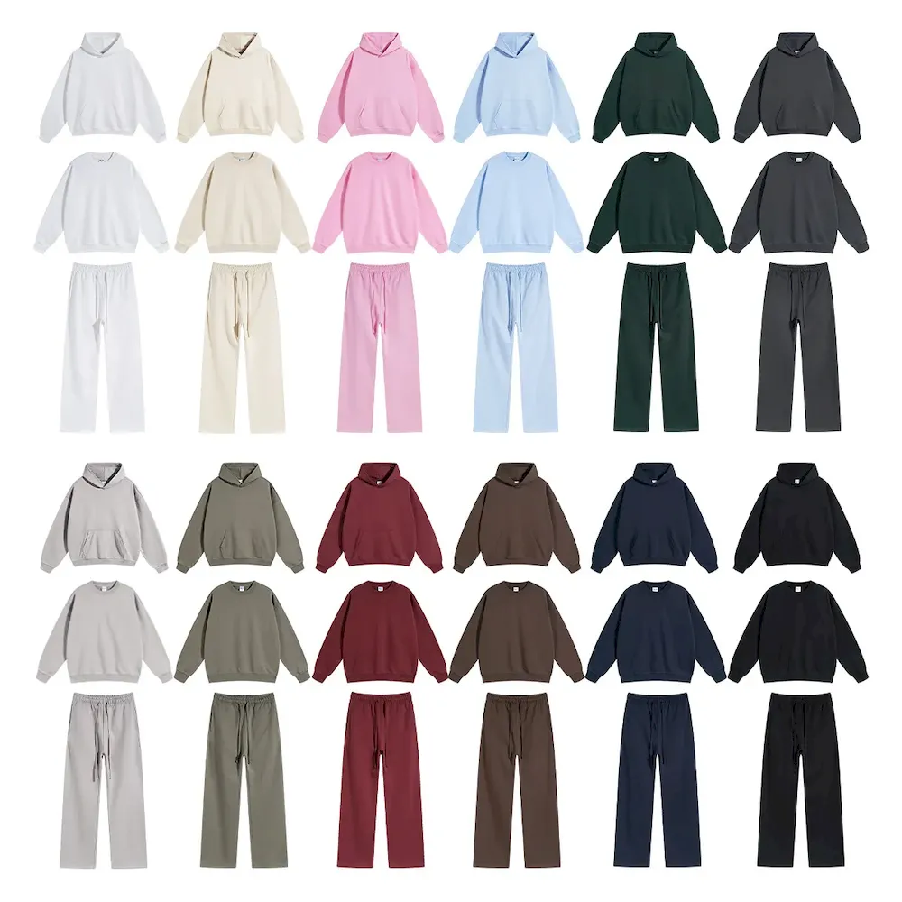 Autumn Winter Simple Neutral Solid Color Loose Round Neck Long-Sleeved Hoodies Pants