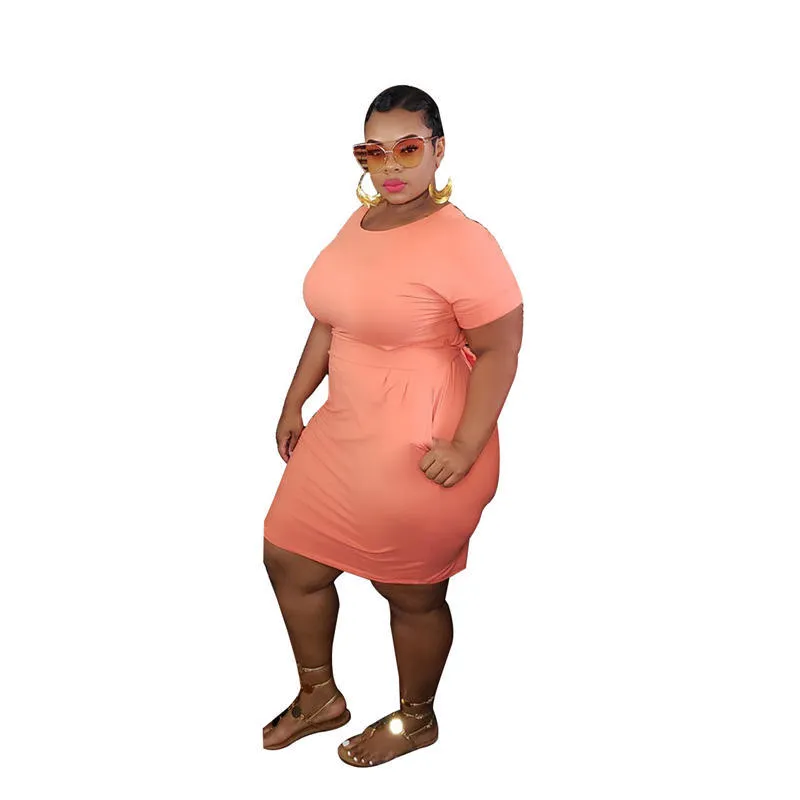XL-5XL Women Plus Size Solid Color Sash Dresses