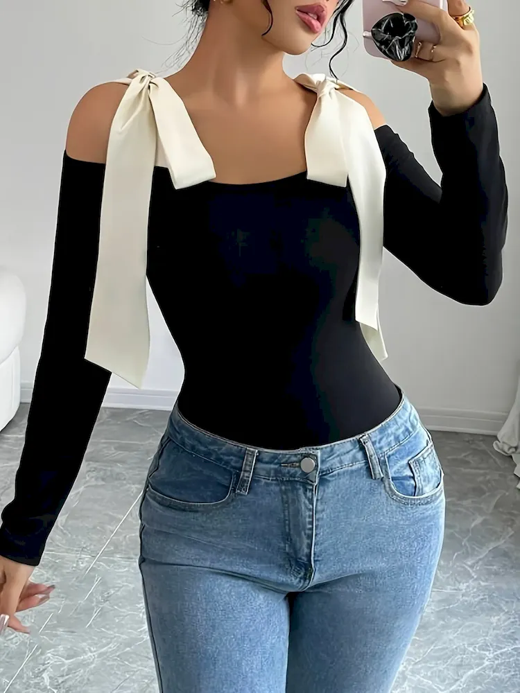 Womenfashion Solid Color Off-Shoulder Sexy Mini Flare Long Sleeve Dress