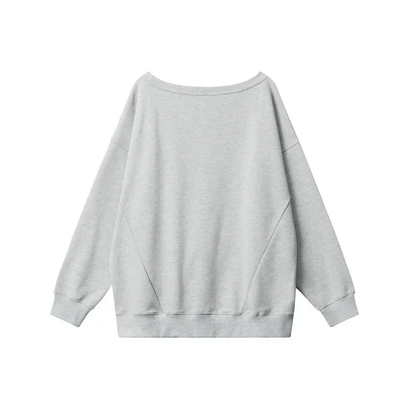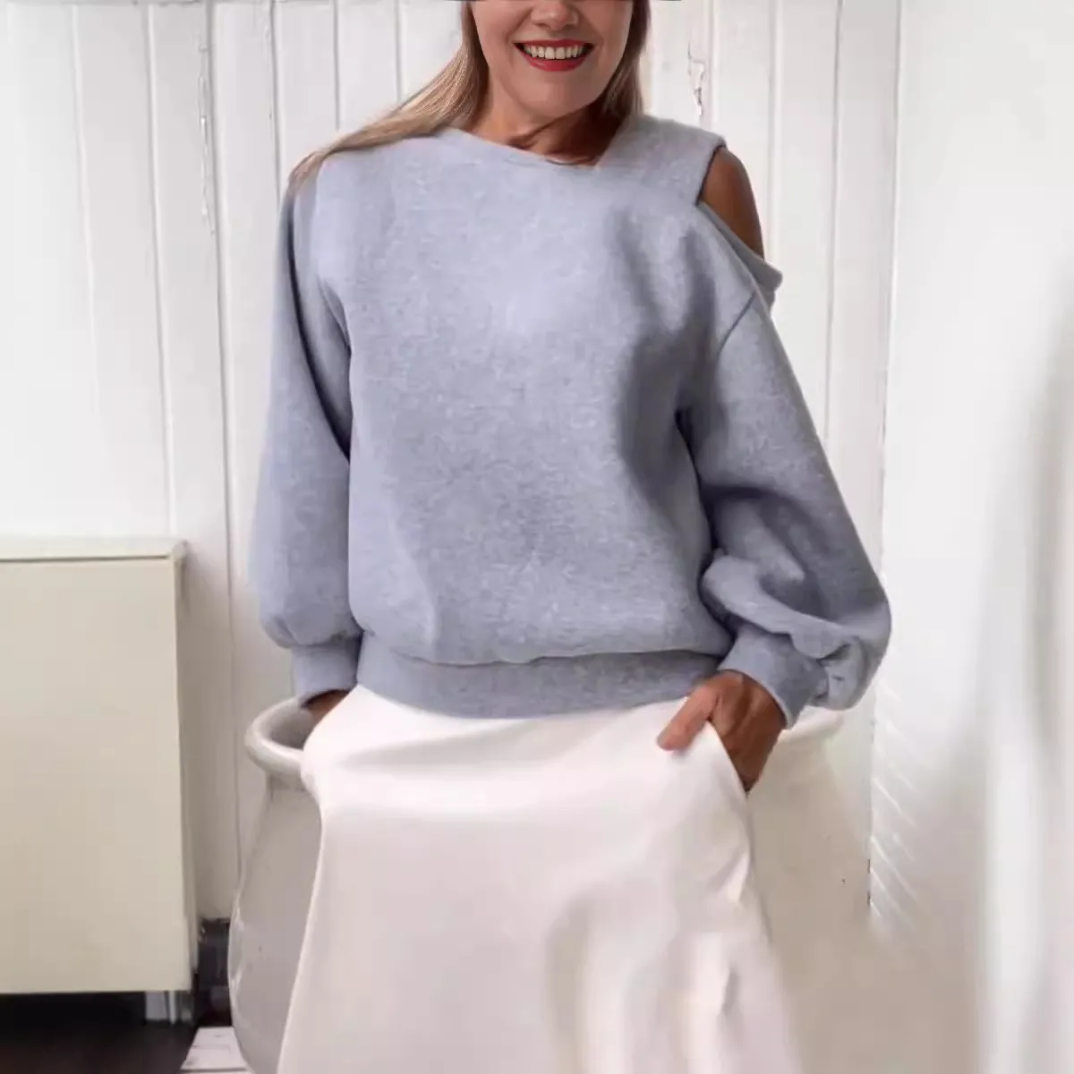 Autumn Winter Women Fashion Solid Color Shoulder Loose Long Sleeve Sweatshirt