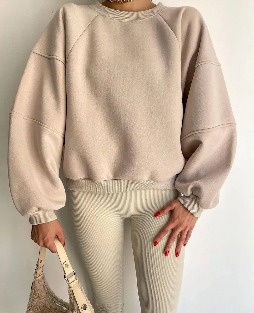 Autumn Winter Women Fashion Solid Color Loose Round Neck Long Sleeve Blank Sweatshirt